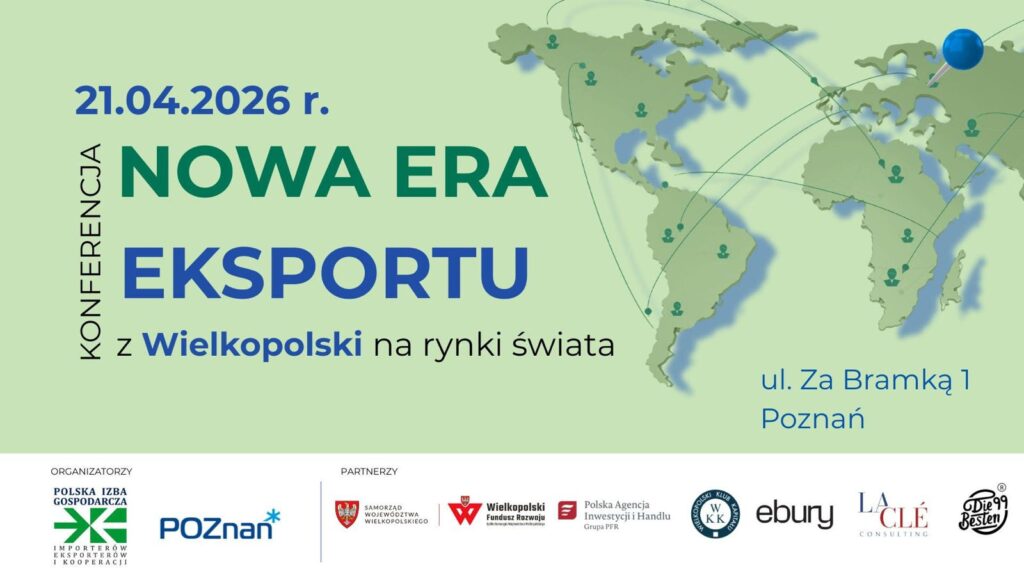 LA CLÉ Consulting na konferencji „Nowa era eksportu – z Wielkopolski na rynki świata”. Już 21 kwietnia weźmiemy udział w wydarzeniu organizowanym przez Polską Izbę Gospodarczą Importerów, Eksporterów i Kooperacji oraz Poznań Biznes Partner.